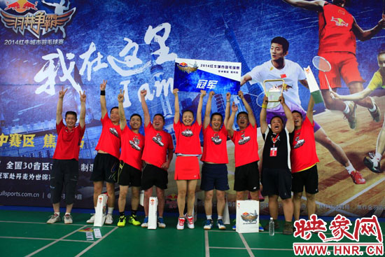 映象網(wǎng)訊 2014年5月31日,下午18:00時(shí),焦作永樂(lè)隊(duì)和濟(jì)源羽毛球協(xié)會(huì)代表隊(duì)正在奮力爭(zhēng)奪“羽林爭(zhēng)霸”2014紅牛城市羽毛球賽華中賽區(qū)焦作站的冠軍席位,尖叫聲和鼓掌聲此起彼伏,雙方實(shí)力相當(dāng),懸念較大,最終決戰(zhàn)7輪,方才分出勝負(fù),焦作永樂(lè)隊(duì)幸運(yùn)衛(wèi)冕,拿到了通往華中 賽區(qū)大區(qū)賽的最后一張通關(guān)門(mén)票!