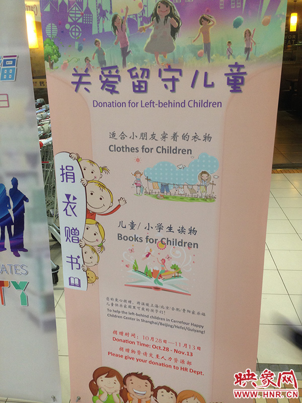 【映象網(wǎng)訊】2016年10月28日,首個“員工多樣,家樂多?!奔覙犯H員工多樣化日活動在鄭州家樂福金水店舉行,同時啟動的還有為期兩周的“關(guān)愛留守兒童”捐衣贈書活動。
