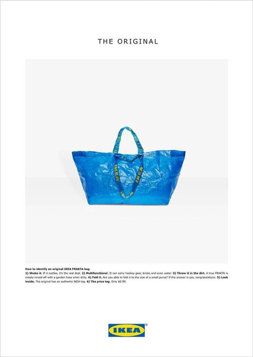 宜家迅速在美國電視節(jié)目 Today Show 中表示他們已經(jīng)‘獲悉此事’,對于這樣的模仿 “深感榮幸”,隨后,宜家也做出一篇趣味購物袋廣告,教大家如何鑒別原版宜家購物袋: