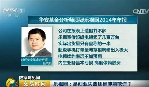 2015年6月,華安基金分析師楊曉磊公開(kāi)質(zhì)疑樂(lè)視2014你年報(bào),他認(rèn)為公司在報(bào)表上的造假并不多,但據(jù)測(cè)算,樂(lè)視宣傳超級(jí)電視賣(mài)了幾百萬(wàn)臺(tái),但實(shí)際出貨量只有宣稱(chēng)的一半、超級(jí)手機(jī)訂單量也與草根調(diào)研數(shù)據(jù)出入極大,電視續(xù)約率遠(yuǎn)不如預(yù)期,內(nèi)生業(yè)務(wù)基本虧損,高度依賴(lài)融資。