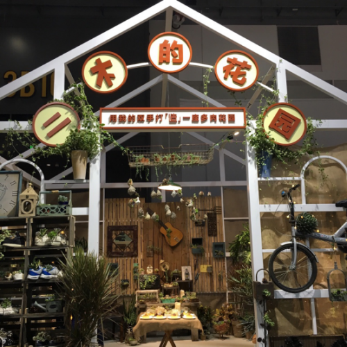 二木花園在造物節(jié)的店鋪位置不大,但充滿了情趣。據(jù)店鋪工作人員介紹,此次店鋪的整體設(shè)計都是由肖杰負(fù)責(zé),3個人從購置裝飾品到買多肉,花了4天才完成。其中一些布置店鋪用的舊鞋子、舊器具等都是花友寄來的。