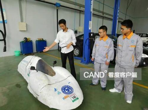 據(jù)了解,這個(gè)“土豪跑車”的學(xué)名叫節(jié)能環(huán)保汽車。不要小看這輛車,它的時(shí)速能開到70-80碼,是由樂山市職業(yè)技術(shù)學(xué)院老師徐斌、劉學(xué)權(quán)指導(dǎo),機(jī)電系學(xué)生熱列學(xué)斌(主車手)、史蓮鑫(副車手)、李思思、賈晉、陳恭達(dá)共同參與設(shè)計(jì)制作出來的。該車還在并在2015年第9屆本田中國節(jié)能競技大賽獲了獎(jiǎng),在全國76支參賽隊(duì)伍,排名27。這輛車在在比賽中,甚至打敗了清華大學(xué)的車子。