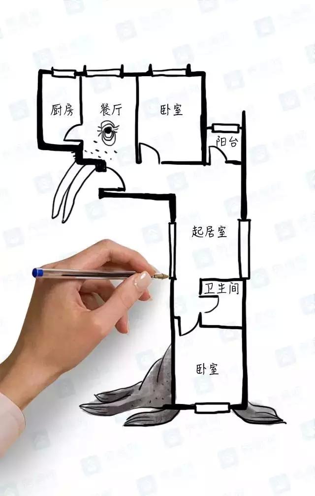 3、客廳有采光,但是房間旁的過道又長又窄,臥室在最盡頭,光線完全照不過去,衛(wèi)生間沒有窗戶,又和廚房一起堵在過道處,味道一定不好聞。