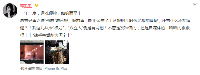 蔣勤勤微博截圖