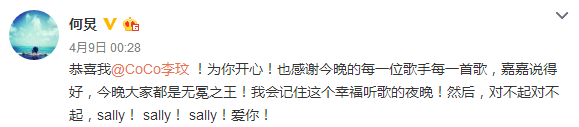 隨后,何炅也發(fā)文想葉倩文道歉,連說(shuō)了兩次“對(duì)不起”。