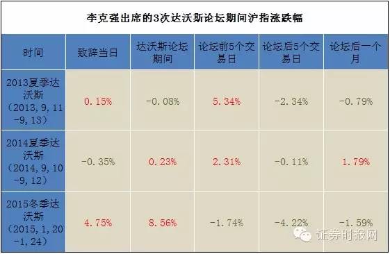 總理出席達沃斯論壇的講話,通常表明了高層對于當(dāng)前經(jīng)濟發(fā)展的態(tài)度以及未來經(jīng)濟政策的走向。統(tǒng)計數(shù)據(jù)顯示,盡管此前3次李克強出席達沃斯論壇滬指表現(xiàn)并沒有太多規(guī)律可言,但總理的講話往往會催生一些板塊投資熱潮,如2013年夏季達沃斯論壇上的金改概念股以及2014年夏季達沃斯論壇上的環(huán)保概念股。