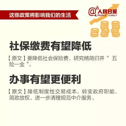 這次會(huì)議還用十個(gè)“更加注重”指明了新常態(tài)下應(yīng)該“怎么干”。更為關(guān)鍵的是,這個(gè)看似“高大上”的經(jīng)濟(jì)工作會(huì)議,其實(shí)離你我并不遙遠(yuǎn):社會(huì)保險(xiǎn)費(fèi)有望降低、非戶籍人口也能住公租房、鼓勵(lì)房企適當(dāng)降房?jī)r(jià)……中央敲定下的這些事,新的一年毫無疑問將給你我生活帶來深刻影響。