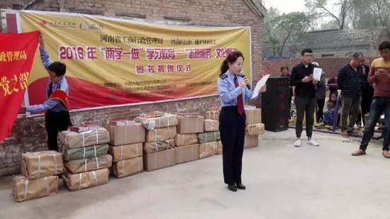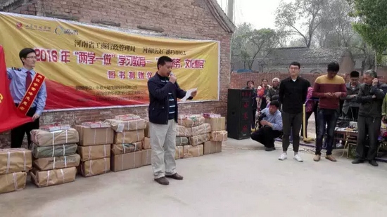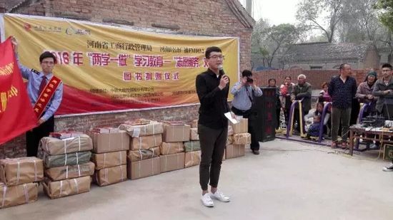 今天,河南省工商局聯(lián)合河南經(jīng)濟(jì)廣播FM1032開(kāi)展“兩學(xué)一做”志愿服務(wù)文化惠民圖書(shū)捐贈(zèng)活動(dòng),來(lái)到封丘縣荊隆宮鄉(xiāng)孫蔡寨村。