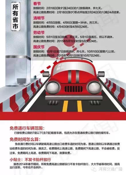 2015年節(jié)假日高速免費(fèi)情況