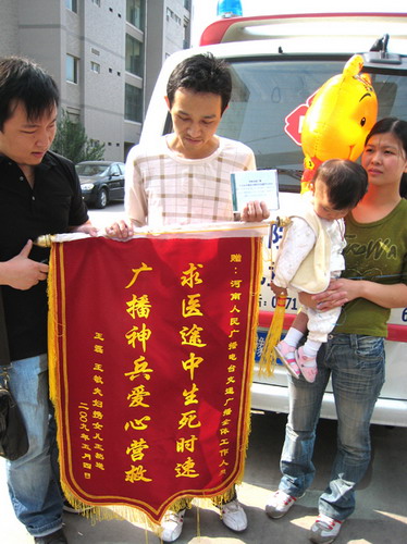 4月6日,在河南人民廣播電臺(tái)空中電波的幫助和協(xié)調(diào)下,衛(wèi)生、高速路政、交警等部門(mén)齊心協(xié)力,展開(kāi)了一場(chǎng)挽救生命的接力大行動(dòng),信陽(yáng)一名生命垂危的手足口病患兒王然得到了及時(shí)救助。經(jīng)過(guò)近一個(gè)月的精心治療,5月5日上午,王然康復(fù)出院,坐上了回家的列車。