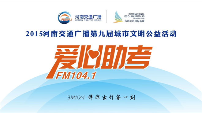 2015河南交通廣播全省“愛心送考”華美升級(jí)為 “愛心助考”,除了常規(guī)車友領(lǐng)取愛心助考、家有考生車貼外,領(lǐng)取時(shí)間和地點(diǎn)后期會(huì)公布,敬請鎖定FM104.1。