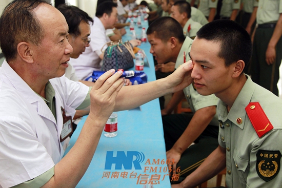 活動(dòng)中,10名河電臺(tái)信息廣播的熱心聽眾作為軍民共建的代表,跟隨醫(yī)療專家來到軍營(yíng),為武警官兵送上了10箱涼茶消暑。隨后,15名武警河南總隊(duì)醫(yī)院骨科、眼科等科室的專家為子弟兵們進(jìn)行了義診。