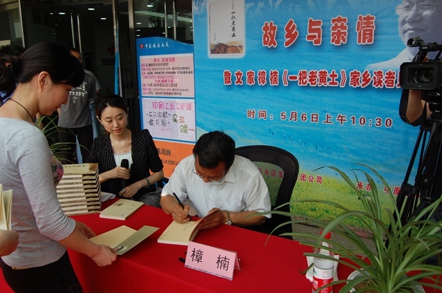 新疆著名散文家樟楠,5月6日在省會(huì)中原圖書(shū)大廈舉行讀者見(jiàn)面會(huì),并現(xiàn)場(chǎng)簽售新書(shū)《一把老黃土》。樟楠原名張可讓?zhuān)幽响`寶人,現(xiàn)為新疆自治區(qū)黨委宣傳部副部長(zhǎng)、《宣傳大視野》雜志總編輯。書(shū)中,樟楠深情地描繪了故鄉(xiāng)的人和事,用簡(jiǎn)潔的筆法,表達(dá)了作者對(duì)家鄉(xiāng)的一片深情.