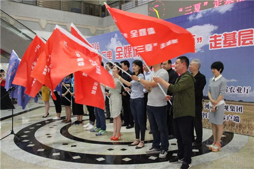年輕的身姿,年輕的聲音,只等著一聲令下,他們就會(huì)奔赴“三夏”前線,用話筒和鏡頭記錄“三夏”實(shí)況,用腳步丈量河南“三夏”的進(jìn)程。出席儀式的領(lǐng)導(dǎo)給記者授旗,記者們激動(dòng)地?fù)u了起來。