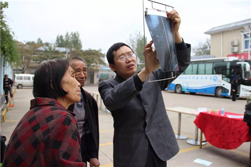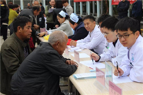 這位老人感動地說:“這些醫(yī)生真負責,坐下幾個小時,忙得連點水也沒喝上!他們看我們歲數(shù)大了,看病不方便了,今天專門來這里,為我們看病、查身體,開藥,都不收錢,我們真高興,生活在這樣一個社會真知足!”