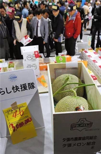日本北海道夕張市特產(chǎn)“夕張蜜瓜”在今年5月26日的一家批發(fā)市場舉行了首次競拍。兩個裝的夕張蜜瓜禮盒被以300萬日元(約合人民幣17.9萬元)的高價拍下。