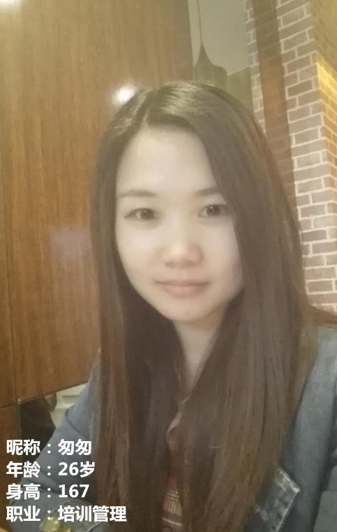 大家好,我是匆匆,今年26歲,在鄭州從事培訓(xùn)管理工作。繁忙的工作和生活,讓我不知不覺的剩了下來,回頭觀望來時的路,卻驚訝地發(fā)現(xiàn)這么多年我的人生旅途中的桃花卻沒有盛開過,不禁陷入憂思和反思中,為什么我的條件也不差,卻一直過著單身的生活,或許自己太過忙碌,忘記了身邊的風(fēng)景,或許平時太過理性,在成長的過程中太過注重成熟忽視了一見傾心的偉大力量,又或許自己不夠勇敢,不敢去追求那份不論位置但求無愧于心的愛情。時光匆匆的走過,不知不覺我已經(jīng)過了二十五開始進(jìn)入女人真正衰老的旅程,好害怕在這最美好年華任憑自己悄悄地老去,因此今天我為了自己的幸福勇敢地跨出了第一步,你是在那個地方等我的人嗎,對于另一半說實話我還真的沒有什么條條框框,但是就像買鞋子,不要求名貴漂亮,但一定要合腳。我希望他可以成熟、穩(wěn)重,可以作為一個依靠在我身邊,無論遇見什么事情都可以在一起承擔(dān),至于長相及其他條件,希望他身高175cm以上吧,愿意在鄭州定居,可以養(yǎng)活自己和自己的父母即可。