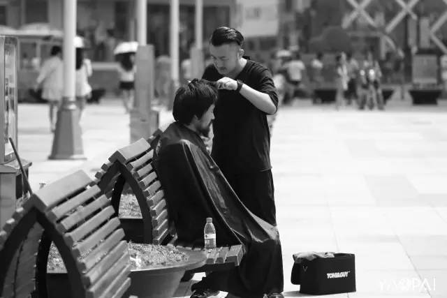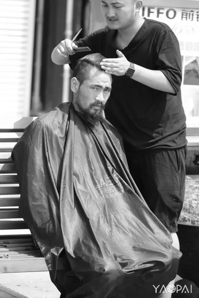 見到他,是在烈日下的二七廣場,話不多,不好意思的接過了我們遞去的一瓶水。想了想,接受了紅濤提出為他免費(fèi)理發(fā)的想法。
