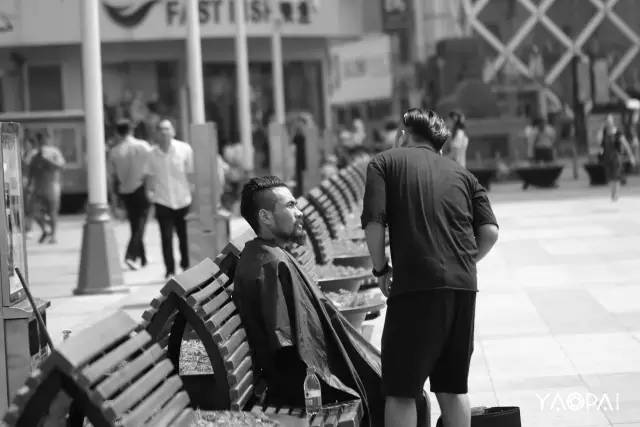 他很享受這個過程,還不時的輕輕撣去掉落在身上的頭發(fā)。