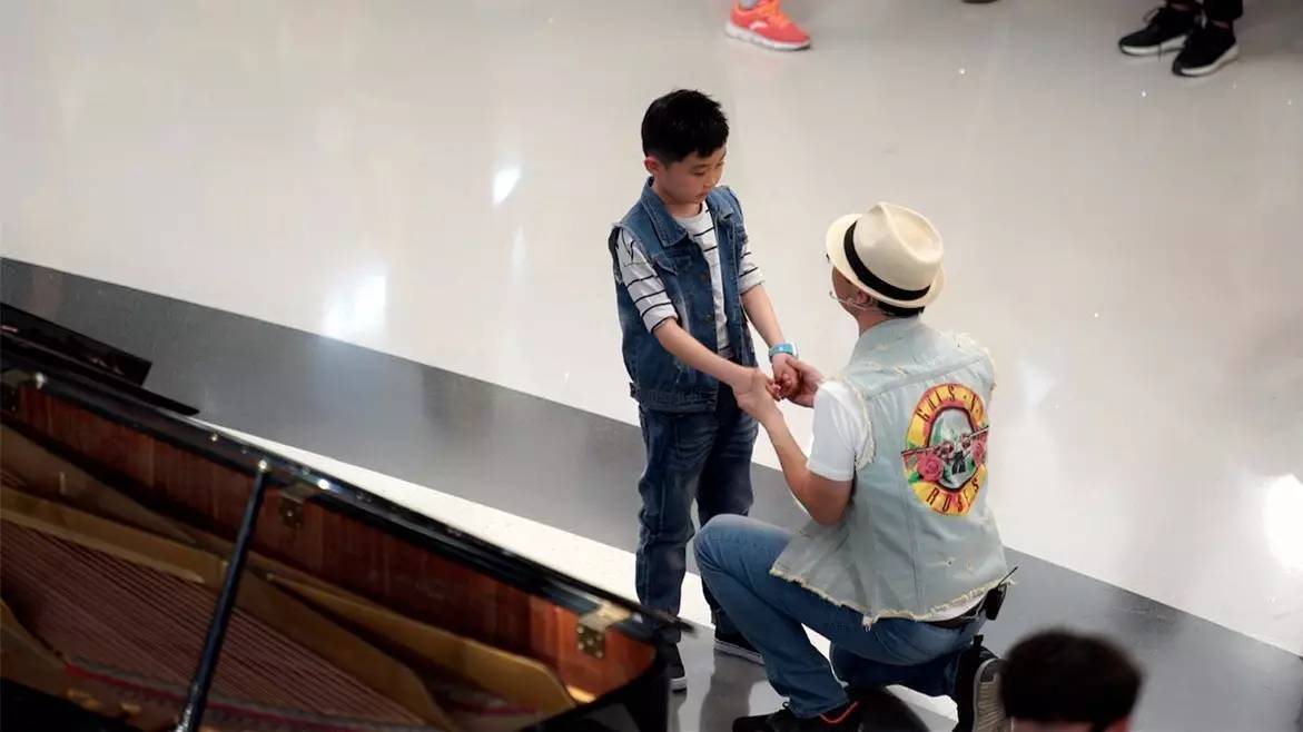 看著孩子還是不說(shuō)話,旁邊的鋼琴師就在這時(shí),彈奏了起來(lái)……