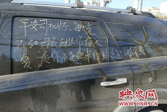 映象網(wǎng)快訊(記者 邱延波 文/圖)眾所周知,在全國各地,大爺大媽們對(duì)廣場舞的熱愛,幾乎是風(fēng)雨無阻,雷打不動(dòng)。鄭州市一車輛停在路邊,影響了大爺大媽們跳廣場舞,是可忍孰不可忍,他們?cè)谲嚿蠈懴拢⑼海?,提醒車主早點(diǎn)把車開走。