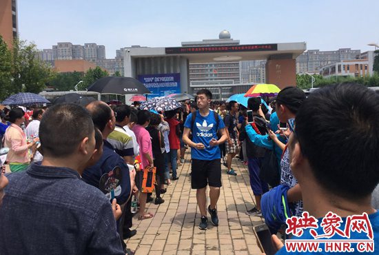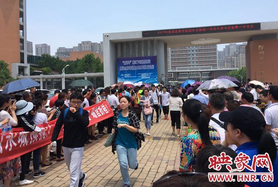 映象網(wǎng)快訊(記者 邱延波 文/圖)“乖乖,這隊(duì)伍排得真壯觀?!?月7日上午,中原西路鄭州一中門(mén)前,家長(zhǎng)們夾道排出百米長(zhǎng)的隊(duì)伍,等待考生走出考場(chǎng)。