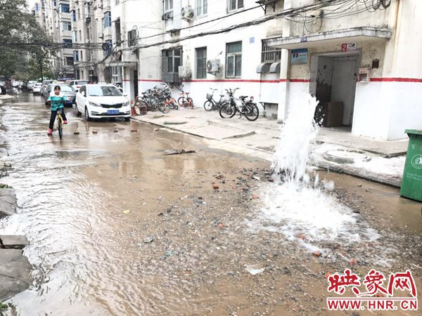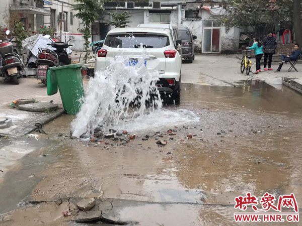 映象網(wǎng)快訊(記者 邱延波 文/圖)11月19日,鄭州桐淮小區(qū)南家屬院19號(hào)樓前,因地下自來水主管道爆管導(dǎo)致路面噴出2米多高的“噴泉”,白白浪費(fèi)掉兩三個(gè)小時(shí)的自來水。一輛轎車壓住閥門井蓋導(dǎo)致無法關(guān)閉閥門,而車主在黃河邊,下午才能回來,工作人員只好把小區(qū)的總閥門關(guān)閉。19日上午9時(shí)許,桐柏路汝河路口東南角處的桐淮小區(qū)南院19號(hào)樓2門洞前的自來水地下管道爆管現(xiàn)場(chǎng),小區(qū)水泥路邊爛個(gè)洞,噴出高高的水柱,小區(qū)道路上全是積水。