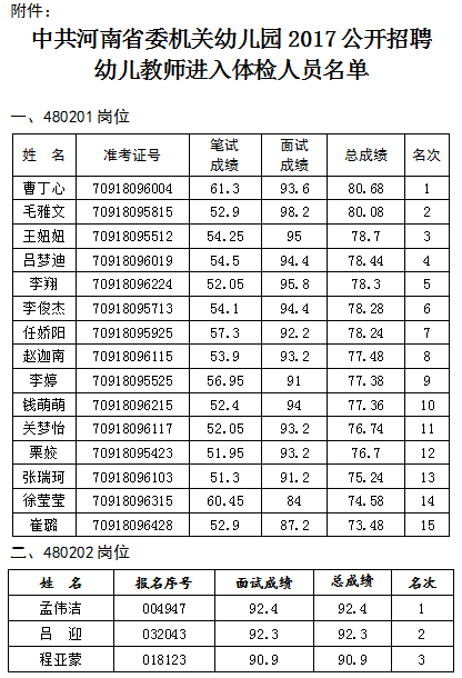 附件:中共河南省委機(jī)關(guān)幼兒園2017年公開招聘幼兒教師進(jìn)入體檢人員名單