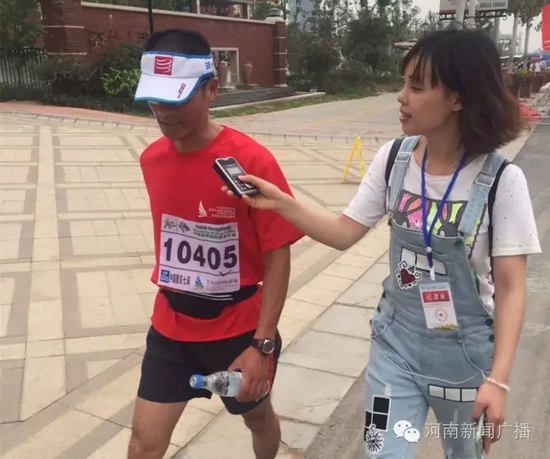 僅僅過了2小時(shí)20分,終點(diǎn)迎來第一位沖向終點(diǎn)的高先生,氣喘吁吁的他在接受我們采訪時(shí)依然腳步穩(wěn)健。