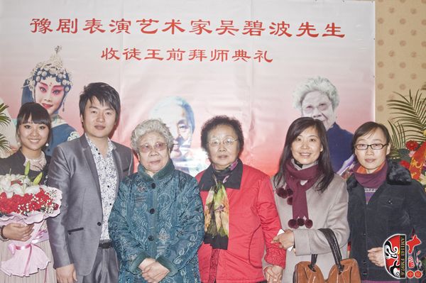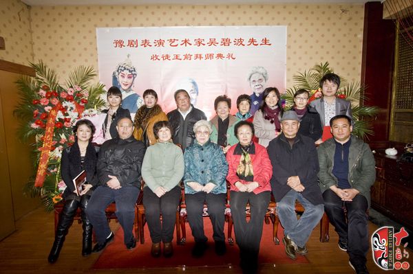 11月19,著名的豫劇表演藝術家、陳派掌門大弟子吳碧波先生喜收新徒。省豫劇二團青年演員王前正式拜吳碧波先生為師。收徒儀式樸素而溫馨,曲劇名家王秀玲、豫劇名家軒玉亭、陳派名家郭美金、武惠敏、陳素真五子王闿聰?shù)惹皝砼鯃觥?/p>