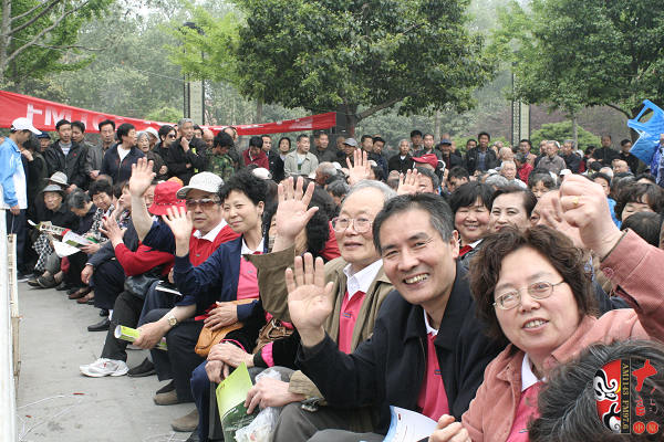 4月17日上午,在位于洛陽市中心、以體現(xiàn)周朝文化為主題的周王城廣場,“周公營建洛邑”雕塑旁,主辦方舉辦了一場別開生面的戲曲演唱會。來自鄭州、洛陽兩地的豫劇名家張月榮、曾廣蘭、趙曉梅、王藝紅,著名演員徐俊霞、陳大華、劉亞林、曲韻、劉海功、沈萍,梨園春明星擂主張艷紅、謝憲笙等為來自全省各地的戲曲廣播《戲迷俱樂部》百余位戲迷和現(xiàn)場的廣大觀眾奉獻了精彩的戲曲唱段。藝術(shù)家們演唱的《洛陽橋》、《秦雪梅》、《七品芝麻官》、《對花槍》、《拷紅》、《收姜維》、《朝陽溝》、《倒霉大叔的婚事》、《小白鞋說媒》、《紅菊》等不同劇種、不同流派、不同行當?shù)哪捴巳丝诘某唬┑糜^眾一陣又一陣的掌聲,河南戲曲廣播主持人媛媛、李鋮表演的雙簧妙趣橫生,引得觀眾樂不可支。