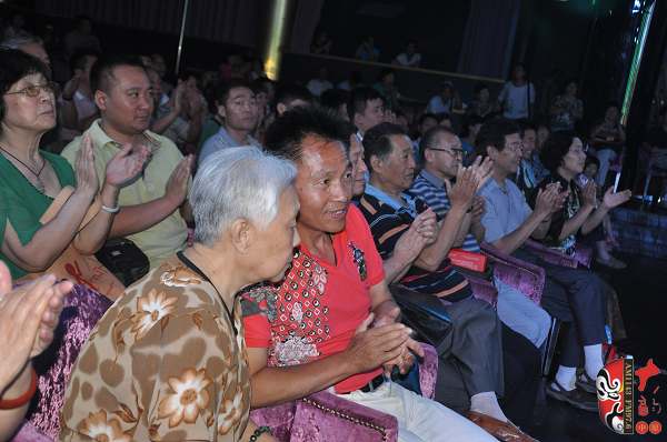 在當(dāng)天的演出中,除了關(guān)小鳳的精彩演唱之外,中國戲劇梅花獎得主、豫劇名丑金不換,陳門再傳弟子、中國戲劇梅花獎得主徐俊霞,關(guān)靈鳳親傳弟子霍梅英,戲曲名票龐笑天、吳素芹等也表演了各自的拿手好戲,為關(guān)小鳳助興演出。原西安獅吼劇團(tuán)的高材生、陳素真大師的學(xué)生陳素英今年78歲,在豫劇《三上轎》中她扮演婆婆,為關(guān)小鳳甘當(dāng)綠葉,其老到的表演也獲得了戲迷的熱情掌聲。鶴壁市豫劇團(tuán)團(tuán)長、豫劇名丑金不換剛剛擔(dān)任完河南省第七屆青年演員大賽的評委,就不辭勞苦地趕到演出現(xiàn)場。他介紹說,自己和關(guān)小鳳是封丘于店戲校的同學(xué),當(dāng)年他們那一屆學(xué)生當(dāng)中關(guān)小鳳是表現(xiàn)最優(yōu)秀的。關(guān)小鳳經(jīng)歷坎坷,但對藝術(shù)卻非常執(zhí)著,看到老同學(xué)的精彩表現(xiàn)他非常高興,希望關(guān)小鳳能把祥符調(diào)陳派藝術(shù)發(fā)揚下去,祝福她在藝術(shù)道路上越走越好!
