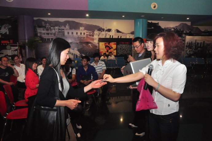 2010年5月8日上午10點,河南電臺旅游廣播FM99.9《故事大秀場》聽友觀影團(tuán),在鄭州百盛6樓的鄭州橫店影視電影城如期舉行。美女主持小佩、菲楊聯(lián)袂登場,與聽眾朋友精彩互動,現(xiàn)場有獎問答,鄭州橫店影視電影城也送出了各種精美禮品!互動期間來自安陽的聽眾非常的幸運,獲得了本次活動的大獎,一等獎:精美的純銀情侶對戒;還有2張價值45元的橫店影城貴賓券!大家?guī)е约旱亩Y物和歡聲笑語,與小佩、菲楊一起在位于鄭州百盛廣場六樓的橫店影城電影城觀看了催淚大片《歲月神偷》,這部影片感動了在場的每一位觀眾。活動最后,每位到場的幸運聽眾還獲得了鄭州橫店影視電影城贈送的寶龍新店“20元現(xiàn)金券”!參與活動的所有聽眾都收獲豐厚,真的是滿載而歸呀!在此特別感謝鄭州橫店影視城對本次活動的大力支持!故事大秀場我秀我飛揚(yáng)~~~