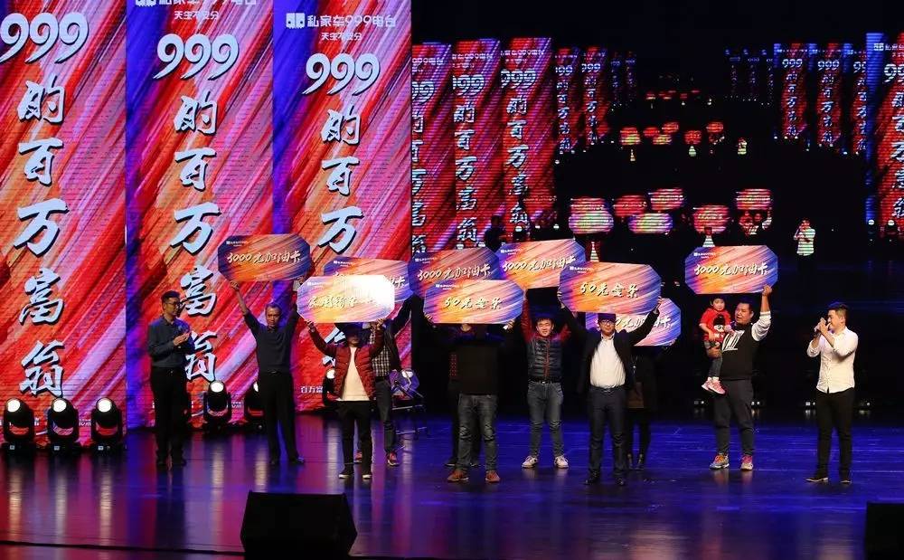 私家車999百萬富翁年終盛典,主播們精彩的晚會表演是一大亮點(diǎn),同樣更亮的是私家車999為大家?guī)淼亩噍喅榇螵劖h(huán)節(jié),汽車、金條、油卡、購物卡……全部都在現(xiàn)場送出。