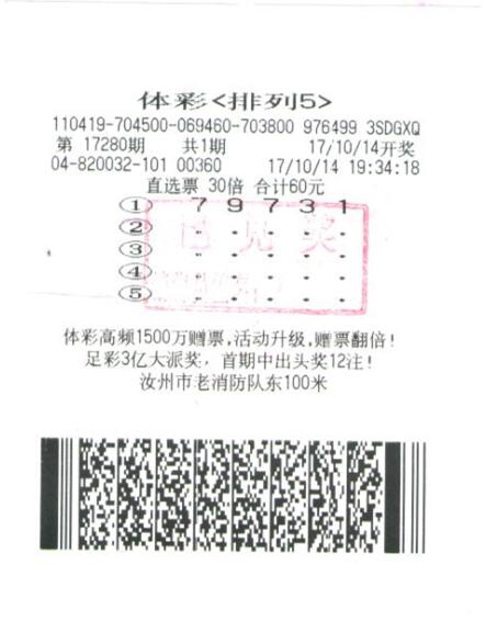 [摘要] 10月14日晚開獎(jiǎng)的排列五第17280期,全國共開出一等獎(jiǎng)47注,位于河南汝州市老消防隊(duì)東100米的4104820032101網(wǎng)點(diǎn)彩民中得35注,其中30注被彩民童先生中得。