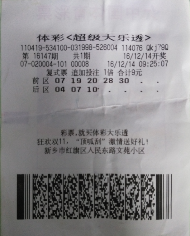據(jù)尚先生介紹,他每次購(gòu)買彩票都是自己根據(jù)走勢(shì)圖和感覺進(jìn)行選號(hào),復(fù)式投注是他的最愛。近期“大樂透”一等獎(jiǎng)?lì)l出,而復(fù)式投注命中一等獎(jiǎng)的幾率更是非常高。尚先生說:“我每次購(gòu)買‘大樂透’都不會(huì)忘記追加,追加投注帶來的獎(jiǎng)金對(duì)于復(fù)式票是非常可觀的。”尚先生通過復(fù)式追加票共獲得本期中獎(jiǎng)獎(jiǎng)金也達(dá)到了5萬多元。