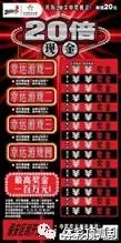 “20倍現(xiàn)金”單張彩票共有20次中獎機會,最高獎金100萬元。票面共有五組游戲,簡單易玩、新鮮刺激。其中,主游戲為:刮開覆蓋膜,在任意一場游戲中,如果你的號碼與中獎號碼相同,即中得該場游戲右方所示的金額;如果在任意一場游戲中,出現(xiàn)倍數(shù)標志“2X,3X,5X,10X或20X”,即中得該場游戲右方所示金額乘以該場游戲所出現(xiàn)的倍數(shù)。其它四場幸運游戲分別為:在幸運游戲區(qū)刮開覆蓋膜,如果出現(xiàn)兩個相同的標志,分別可中得50元、100元、200元和500元。所有游戲中獎獎金兼中兼得。