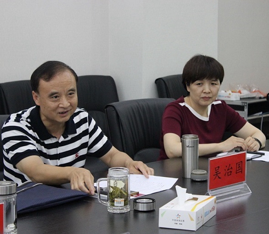 河南省體育局巡視員、黨組成員吳治國(guó)(左)和省體彩中心書(shū)記王海新(右)在分中心調(diào)研