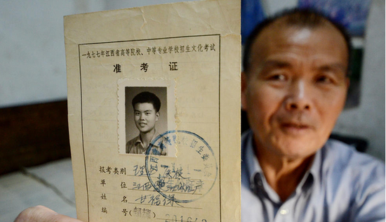 1978年夏天,迎來恢復高考后的第二次考試,考試結(jié)束后,甘福保跑到高招辦買了試卷回來自己做,從此后,他就一發(fā)不可收拾,每年高考都會買一份試卷回來,一直堅持到2016年的高考。圖為甘福保展示當年高考時的準考證。