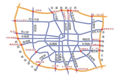 3月14日,與京港澳高速相連的南三環(huán)站開通運營;3月20日,與西南繞城高速相連的隴海路站開通運營;今天,與連霍高速相連的東三環(huán)北站,也于9點正式開通運營。如此一來,我市的高速公路出入口達到了20個。