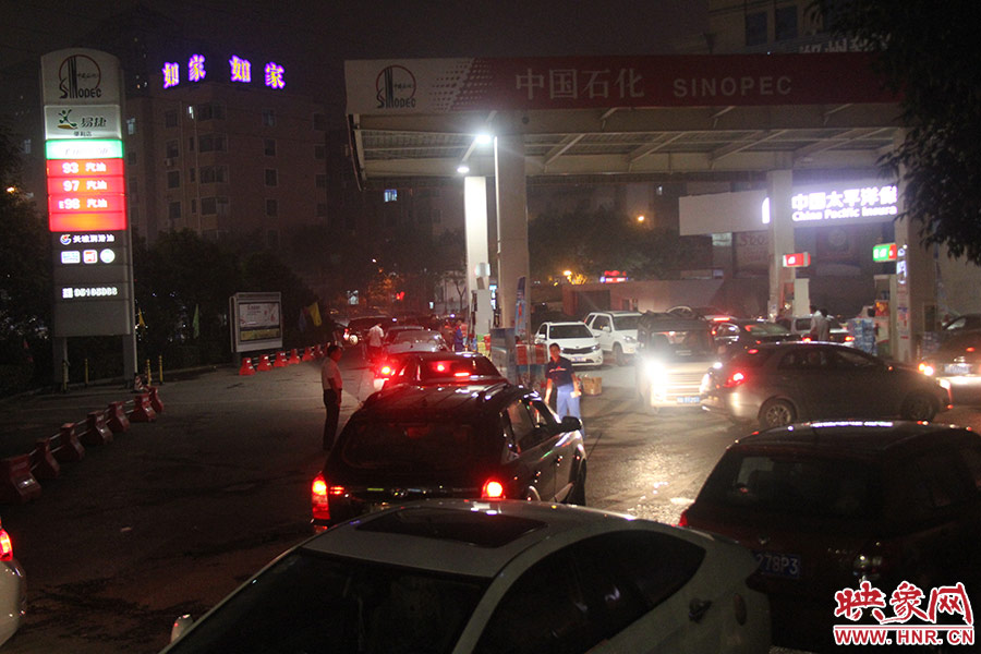 映象網(wǎng)訊(記者 駱瓊 文圖)據(jù)國家發(fā)改委網(wǎng)站消息,自2013年7月19日24時(shí)起,汽、柴油價(jià)格每噸分別上調(diào)325元、310元,測(cè)算到零售價(jià)格90號(hào)汽油和0號(hào)柴油平均每升分別漲0.24元和0.26元。7月19日下午10時(shí),記者來到鄭州市農(nóng)業(yè)路與經(jīng)三路一家加油站發(fā)現(xiàn),很多有車一族都趁著油價(jià)上漲之前到臨近加油站“扎堆”加油。