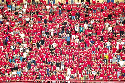 看上去沒有太大懸念的比賽,在下半場剛開始3分鐘就因為恒大隊長鄭智的一次犯規(guī)而突現(xiàn)波瀾:當(dāng)時他在中場回追時拉倒尹鴻博,吃到本場比賽的第二張黃牌,被罰下場。建業(yè)人數(shù)占優(yōu),對方少的又是中場核心,這頓時點燃了全場球迷心中原本已經(jīng)破滅的希望,航體內(nèi)的氣氛重新變得火爆起來。