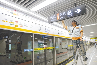 記者在沿線16個車站看到,除東大街站由于開工最晚,目前仍在進行最后裝修施工外,其他車站內(nèi)部裝修工作已基本完成。