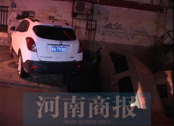 鄭州新鄭路凌晨現(xiàn)一深坑 停在路邊的兩車掉入坑中