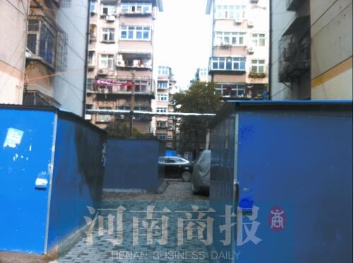 根據(jù)市民的反映,11月8日上午,河南商報(bào)記者來到位于百花路上的五棉社區(qū)。剛一進(jìn)門,小區(qū)內(nèi)一間間活動(dòng)板房就顯得格外扎眼,每個(gè)占地5~10平方米左右,大小不一,門上都有一把大鎖鎖著。在小區(qū)門口也建了兩個(gè)板房,只留下一輛車通過的空間。