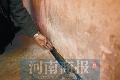 河南商報記者看到,整棟樓的外層也出現(xiàn)了多處裂縫。天明路60號院情況則更加嚴重,有一棟樓因為傾斜,已經(jīng)與地面形成一條三指寬的縫隙。