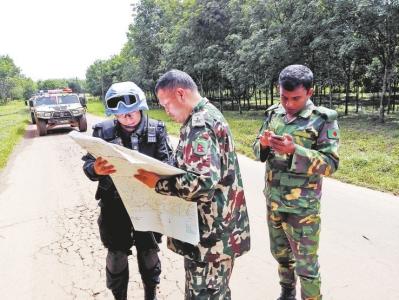 在2016年9月5日,巴波盧遠(yuǎn)程巡邏勤務(wù)中,他和戰(zhàn)友像往常一樣前往星基地與軍事觀察員匯合開展聯(lián)合巡邏勤務(wù)。由于那次屬于跨州遠(yuǎn)程巡邏,路途較遠(yuǎn),在現(xiàn)場聽取軍事觀察員情況通報(bào)時(shí),細(xì)心的他了解到軍事觀察員通報(bào)的巡邏路線與他們接到的指令并不一致,不僅路程更遠(yuǎn),而且要繞道沿途情況不明的小路。在向上級報(bào)告后,他主動(dòng)向軍事觀察員解釋,可軍事觀察員態(tài)度強(qiáng)硬,聲稱巡邏路線應(yīng)由他們確定。面對這些,他據(jù)理力爭,并對兩種巡邏路線進(jìn)行比對,分析利弊,辯駁得軍事觀察員啞口無言。最終,軍事觀察員同意按照前期指令的巡邏路線行動(dòng)。不僅如此,軍事觀察員還豎起大拇指稱贊“You areprofessional!(你是專業(yè)的)”。而他則將手放在胸前的五星紅旗上,微笑著答道“Thanks?。ㄖx謝)”。