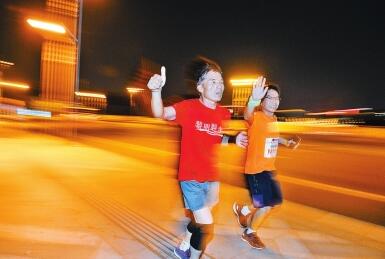 7月1日晚上,在鄭東新區(qū)龍湖外環(huán)南路和如意西路交叉口附近,19名跑友以夜跑12個小時的形式,激勵即將跨入大學校門的寒門學子堅持前行。經(jīng)過12個小時的奔跑,有5名跑友跑步距離超過100公里,其中,年齡最大的跑友65歲。