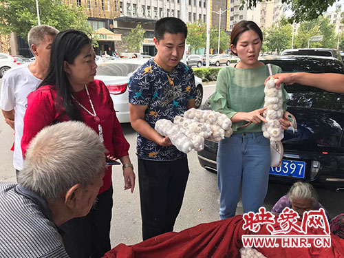 8月23日中午,在鄭州市福元路英協(xié)路路口,愛心市民注意到了正在賣大蒜的兩位老人,紛紛上前搶購(gòu)。