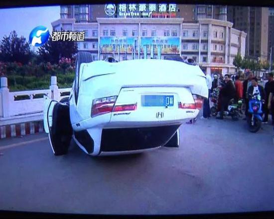 這是發(fā)生在4月26號,許昌襄城縣的一起事故。視頻中一輛白色轎車飛速撞向護欄后發(fā)生側(cè)翻。